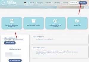 Die Kundennummer benötigen Sie für eine Anmeldung zu einem Webinar damit das Zertifikat richtig zugeordnet werden kann. Die Kundennummer finden Sie in Ihrem Profil.